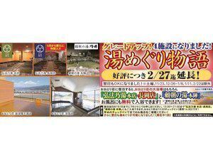 2/27迄<弘法の湯 本店>&<弘法の湯 長岡店>&<頼朝の湯 本陣>の大浴場もご利用可!